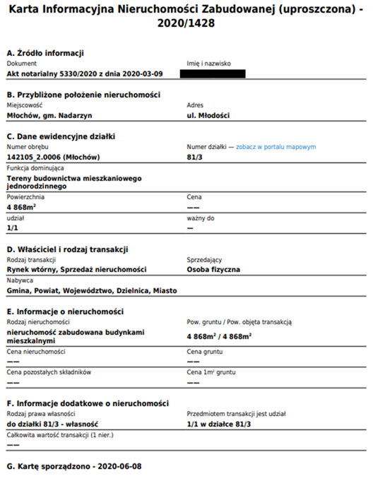 Poniżej przykład takiego raportu (celowo ukryta została cena i dane notariusza):